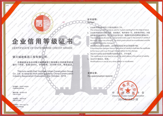 銀川城建集團(tuán)榮獲全國(guó)建筑業(yè)AAA級(jí)信用企業(yè)